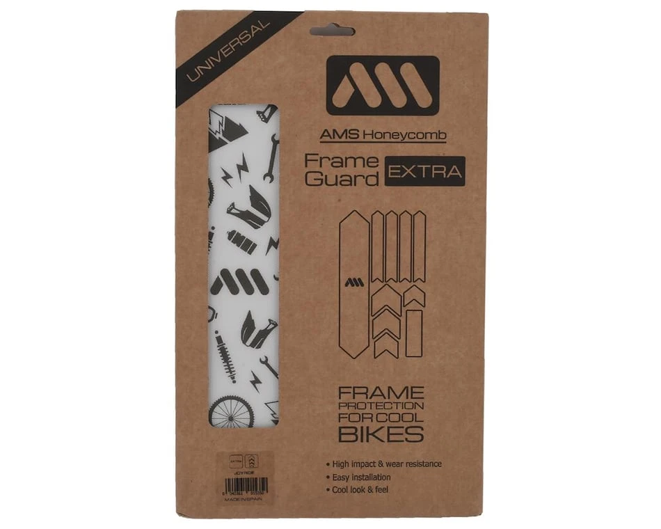 - AMS Honeycomb Frame Guard protects bike frames from impact chips, scratches, and cable rubbing.
