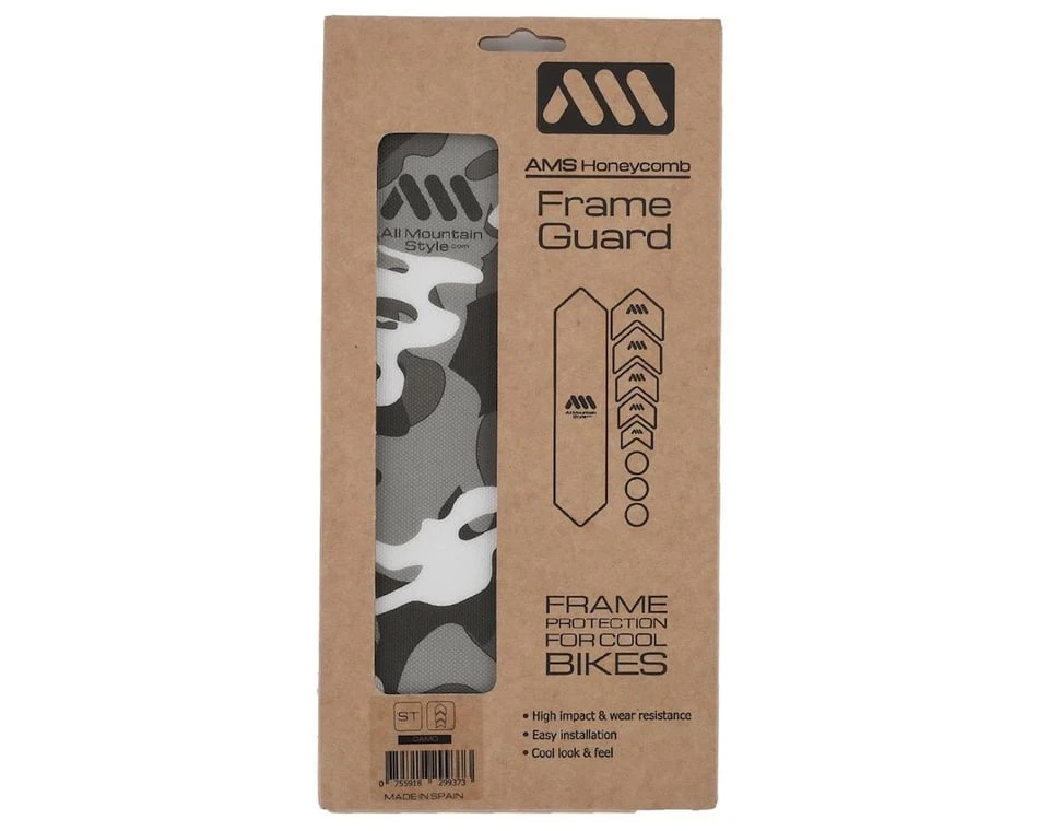 - AMS Honeycomb Frame Guard protects bike frames from impact chips, scratches, and cable rubbing.