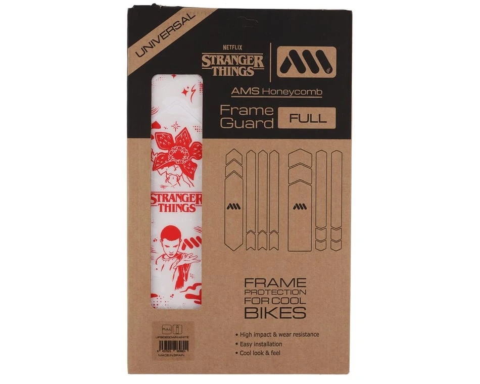 The All Mountain Style Stranger Things Frame Guard Full was born of a collaboration between AMS and Netflix. Now you can protect your bike while repping the upside-down world. Featuring plot elements such as the lightbulbs Will used to tell Joyce to run, and the very Demogorgon itself, you’ll be able to relive your favorite moments while out on your bike.
