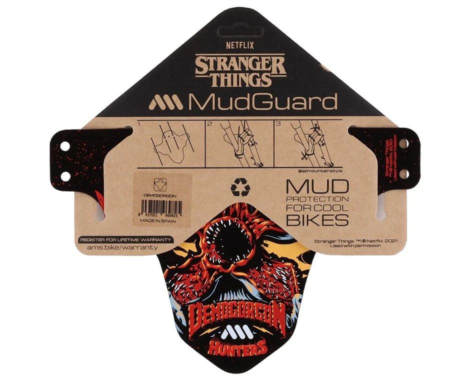 The All Mountain Style Stranger Things Mud Guard was born of a collaboration between AMS and Netflix. Now you can protect your bike while repping the upside-down world. Featuring plot elements such as the lightbulbs Will used to tell Joyce to run, and the very Demogorgon itself, you’ll be able to relive your favorite moments while out on your bike.
