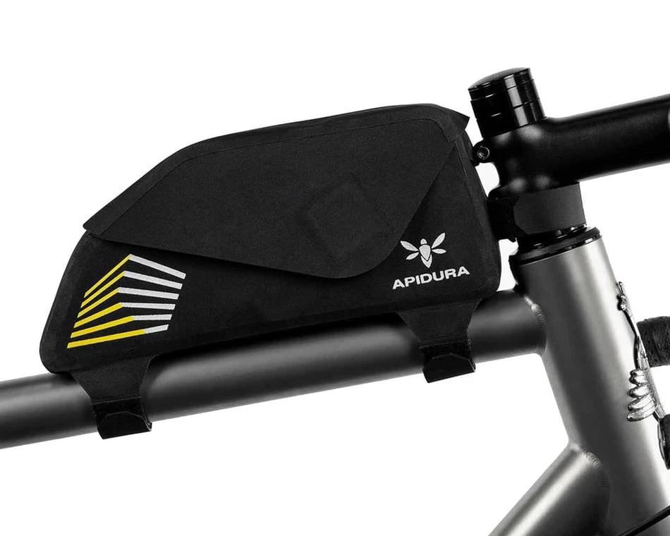 The Apidura Racing Top Tube Pack is designed for ultra-distance cycling competition and the needs of time-conscious riders. With an innovative magnetic quick-access flip-top opening, this waterproof top tube bag is ideal for storing battery packs, mobile phones and race essentials.