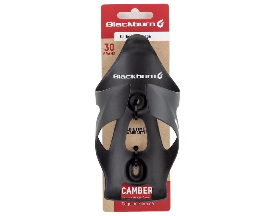 The Blackburn Camber UD Carbon Water Bottle Cage is plenty tough to handle the rigors of mountain biking, yet elegant enough to be at home on a road bike. The UD carbon fiber construction is lightweight and strong while the “Rib Cage” design ensures your bottle stays in place over rougher terrain. The flared top opening assists with aligning your bottle to your cage while on the fly.