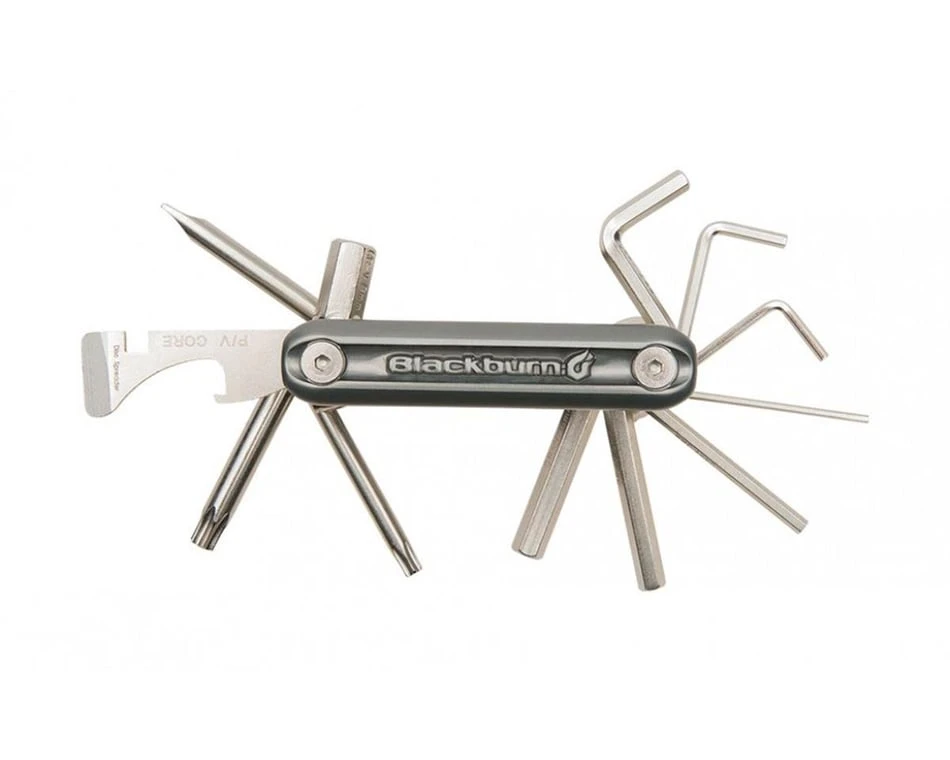 The Blackburn Grid 13 Multi Tool contains the most common tools to interface with modern bicycle components, and oriented in the best way for their intended use.