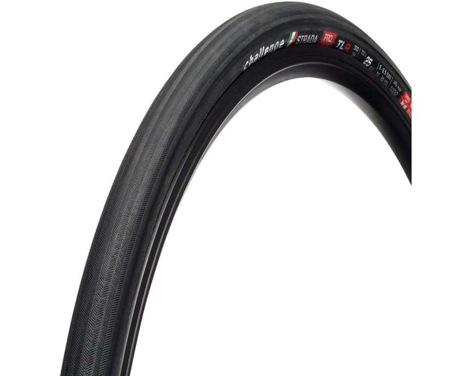 The Challenge Strada Pro is the go to tire for long days out on the road. It takes many characteristics from all-condition tires to ensure a reliable ride over questionable pavement and features a rounded profile for greater vibration reduction and maximum control. The handmade construction is also tubeless ready so riders can enjoy the added benefits of running lower pressures and reduced pinch flats.
