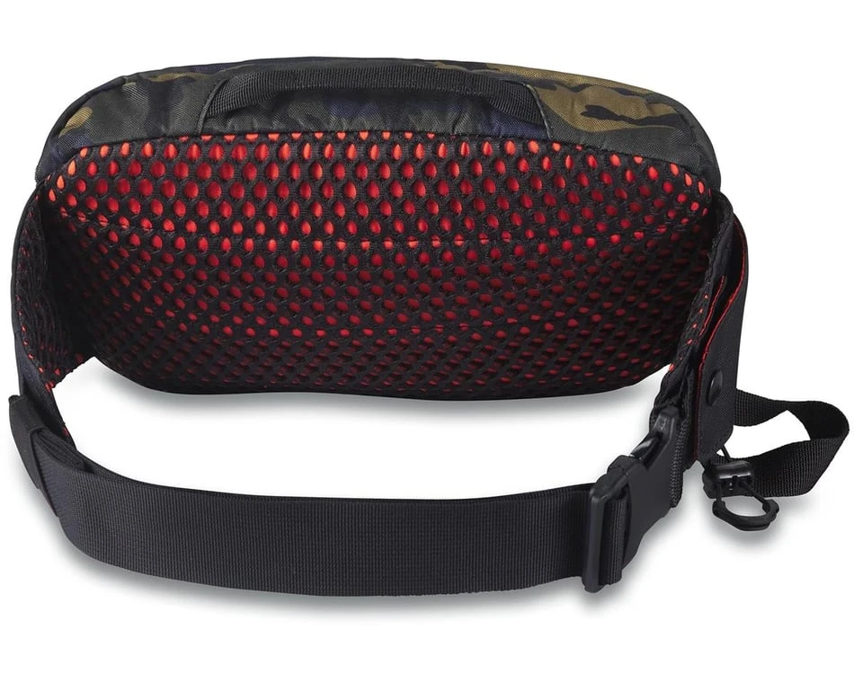 The Dakine Hot Laps 1L hip pack utilizes an ultra-intentional design that features a single deployable water bottle pocket, external straps for pads, and one cargo pocket with organization for tools, a tube, and snacks. Its compact size will stay put through the jankiest tech sections, but its deliberate functionality ensures you’re repair-prepared. For those with a dialed kit, this is the ideal piece for everyday rides.