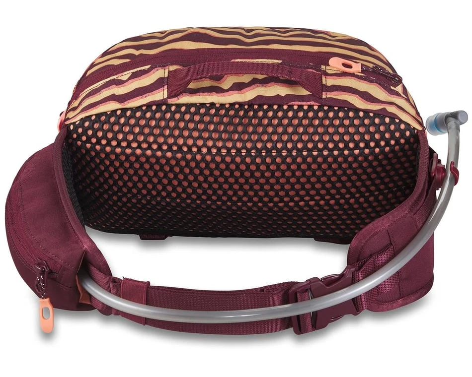 The Dakine Hot Laps 5L hip pack comes complete with a 2L hydration reservoir and additional space to store a wide range of gear for your rides. The pack features a fleece-lined pocket on the padded hip belt to conveniently stow a phone or sunglasses while the main compartment features organization for tools, clothing and snacks. Side compression straps keep the load as close as the water reservoir is emptied, and a breathable air mesh back panel does away with hotspots to minimizes sweat build-up.