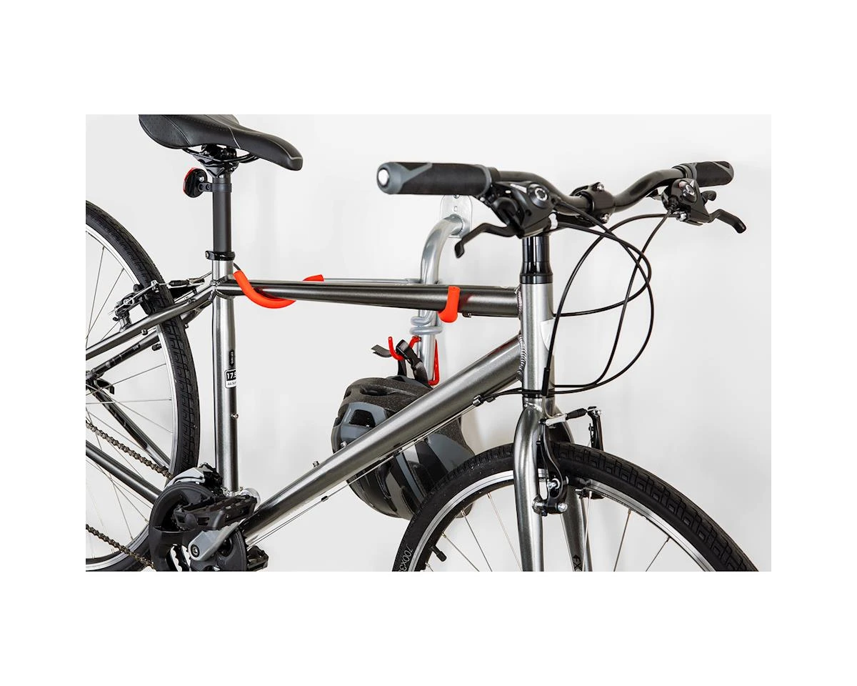 The Delta Rosetti Universal Wall Mount is a simple, elegant, solution for single bike storage. Its easily adjustable arms enable it to hold any style of bike frame, making it perfect for bikes with sloping top tubes or non-traditional designs. The rack also includes a bonus storage hook to keep your helmet handy.