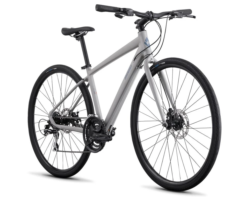 Going full roadie can be daunting, so Diamondback took the efficiency of a road bike platform and made a few tweaks to produce the Metric fitness bike. Based on 700c wheels, it rolls fast and efficient, yet incorporates a flatbar and upright riding position to increase comfort and stability for the average rider. Paired with a Shimano 3 x 8 speed drivetrain, mechanical disc brakes, and integrated rack and fender mounts, the Metric will easily establish a place for itself in your life.