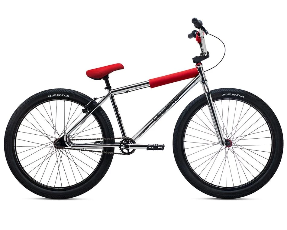 The DK Legend 26″ BMX Bike features a classic design with a looptail frame, classic chrome colorway, and retro 2-piece padset that gives true meaning to it’s throwback style and namesake. Don’t let the old school look fool you, though, as the aesthetics are the only thing aged about this bike. The components are entirely modern utilizing all sealed bearings and parts such as 3-piece chromoly cranks, chromoly bars, and double wall rims to make sure that this model can be ridden hard everyday. If you want a bike that can cruise the neighborhood and then hit a big gap without any hesitation all while maintaining a classic style that is hard to find these days, look no further- DK has you covered with the Legend 26″.