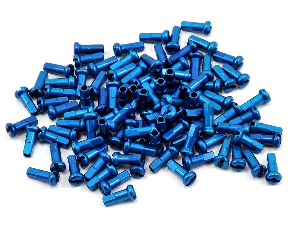 This is a box of 100 Blue DT Swiss 2.0 X 12mm Alloy Nipples .