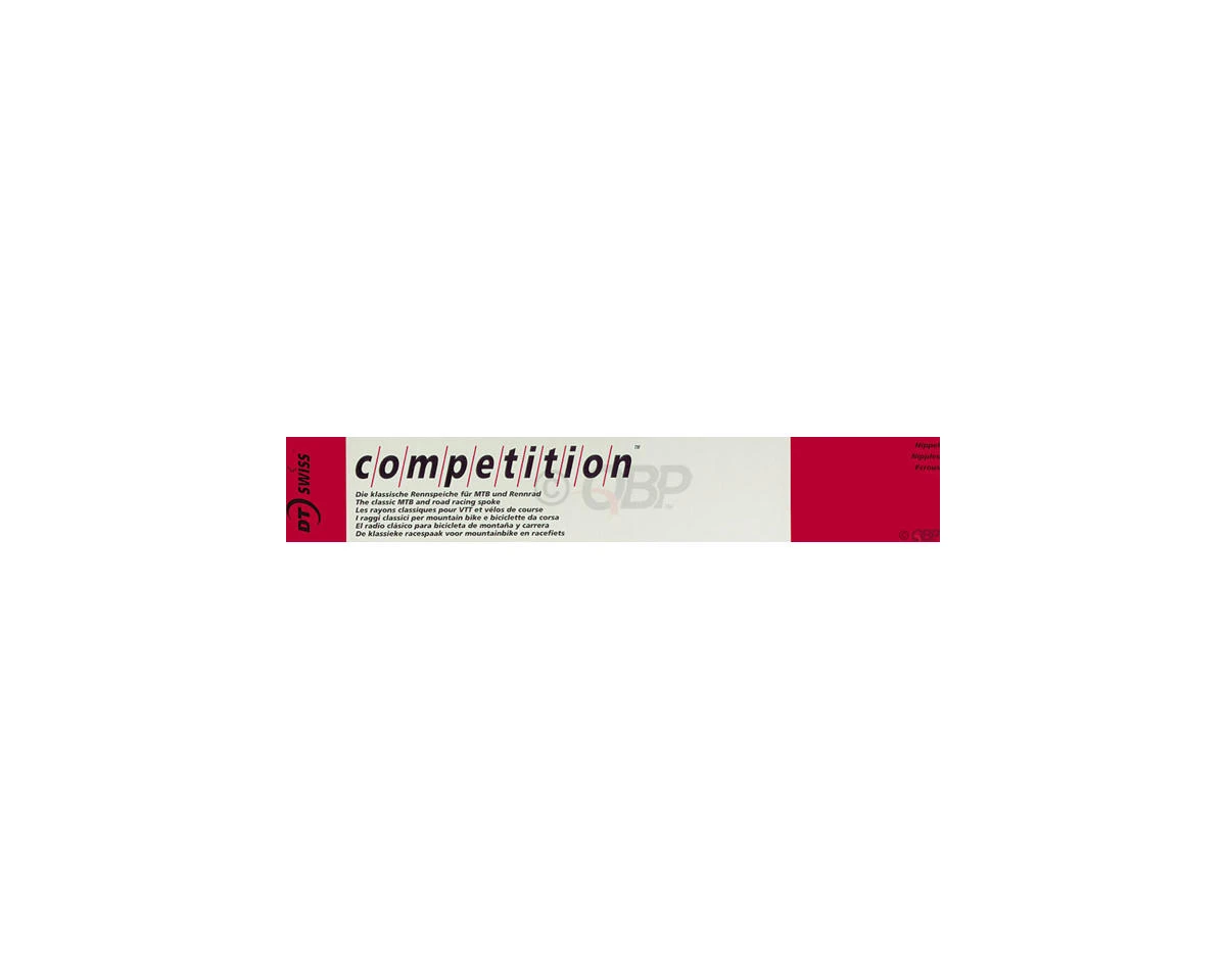 This is one of the most versatile spokes in the DT Swiss spoke range. DT competition gets its special strength from cold forging. This makes an extremely durable spoke and thanks to the thinner middle section, it is 48 g lighter (per 64 spokes) than a spoke with a constant diameter of 1.8 mm. It is perfect for a wide range of uses, from road wheels to super light enduro MTB wheels. Box of 100.