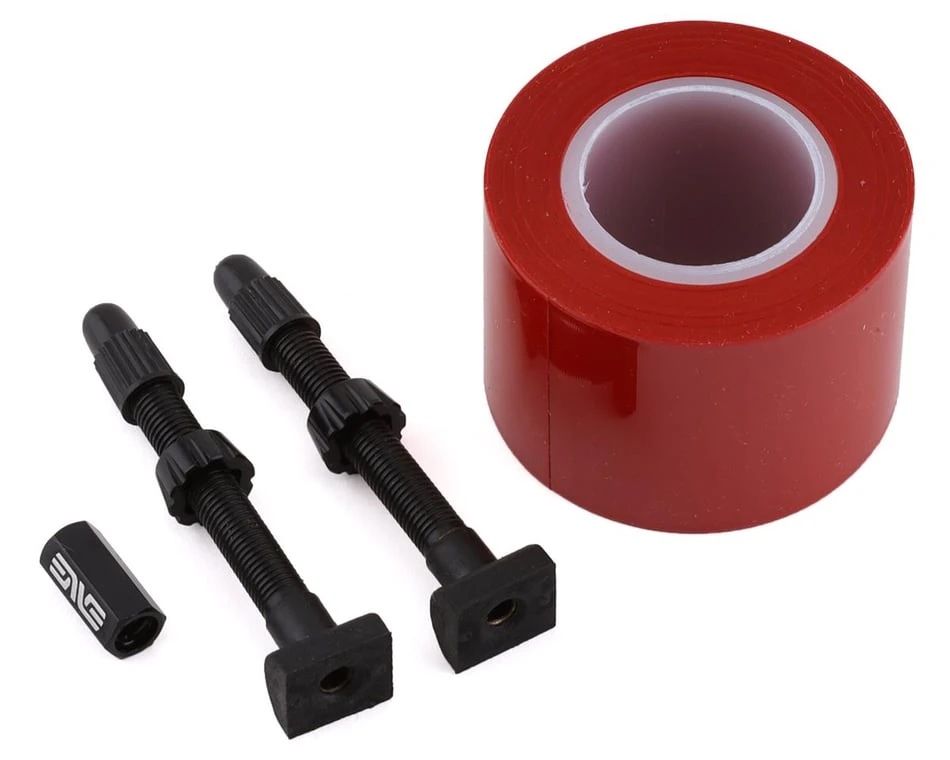 The Enve Mountain Tubeless Kit is designed to be simple to install and functional. Precut tape is specific to Enve rim models for the perfect fit while the valves featuring removable cores and valve core tool further simplify the installation process. Each kit includes enough tape for two rims, 2 valves, and a valve core removal tool.