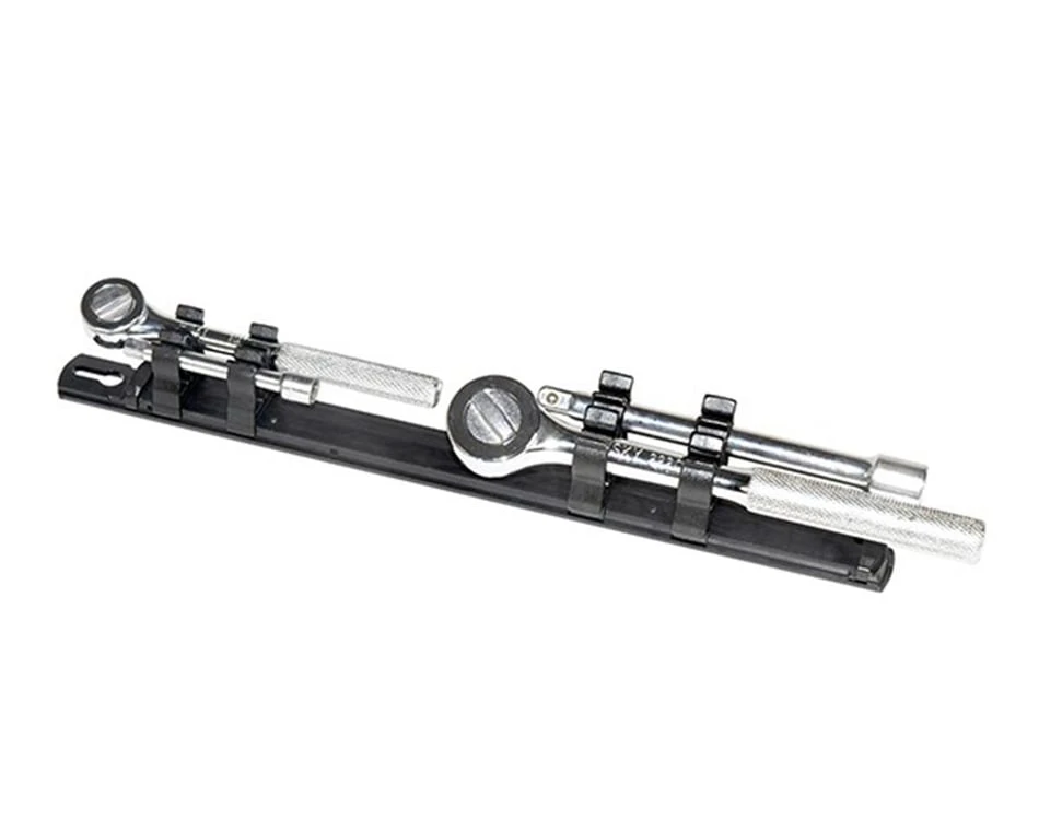 The Ernst Manufacturing 3/8” Face Mount Ratchet an Extension Holder is designed to securely hold 3/8” drive ratchets and extensions in the toolbox or on the go. These holders snap onto the front side (face) of the socket organizer and can adjust to fit any length of ratchet or extension. Your ratchet and extensions are held in place alongside your sockets, right where they should always be.