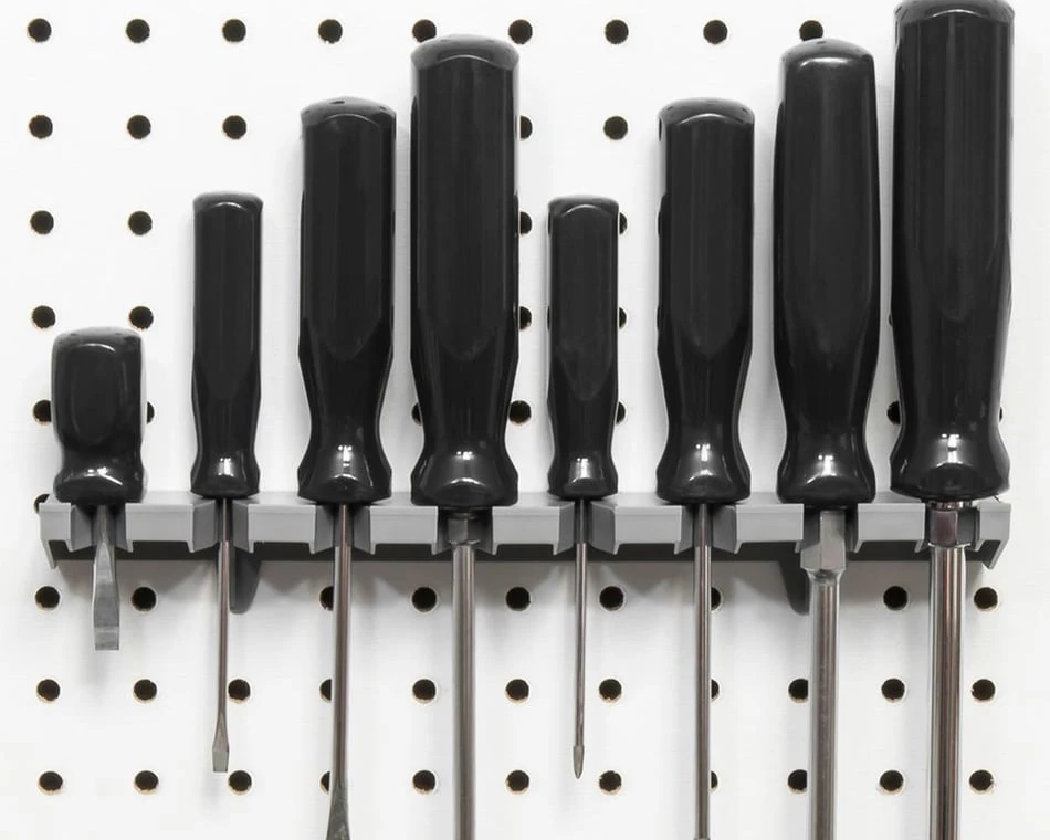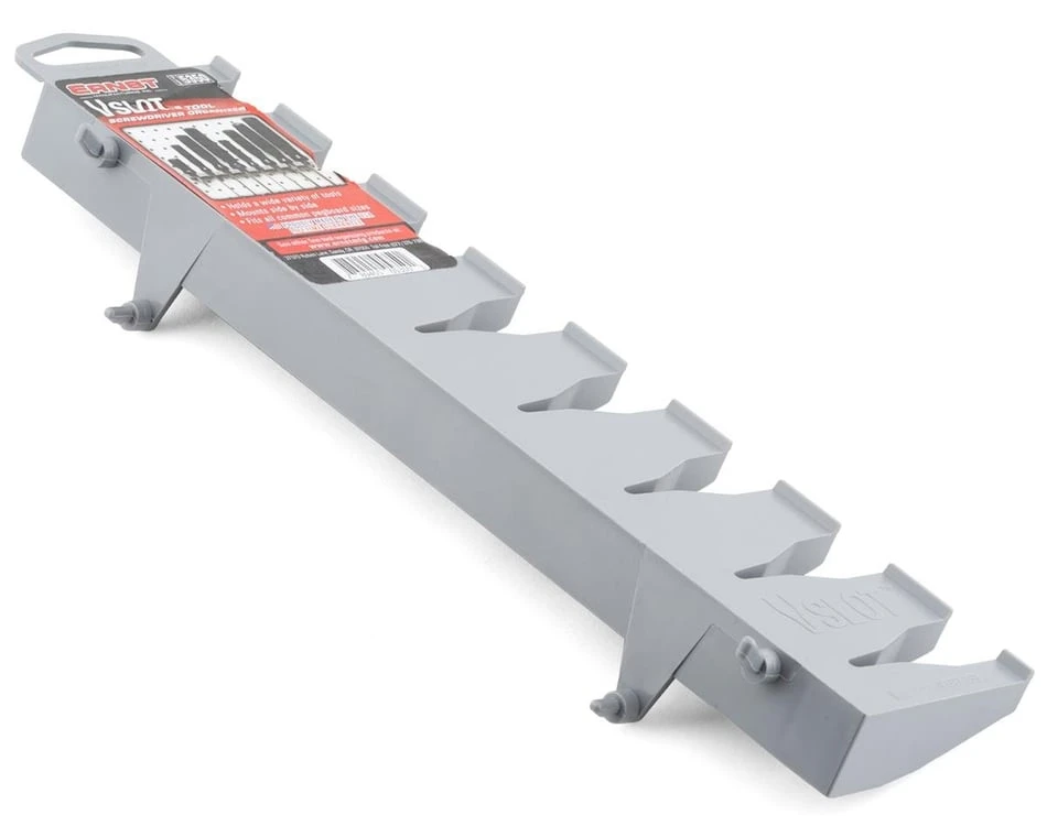 The Ernst Manufacturing V-Slot 8 Tool Screwdriver Organizer is a great way to store your drivers up and out of the way when not in use. The “V” slot is designed to securely hold a wide variety of tool sizes. A slight tilt back and a lip at the edge of the slot keeps your tools from falling out of the holder. Available in multiple colors to best match your work station.