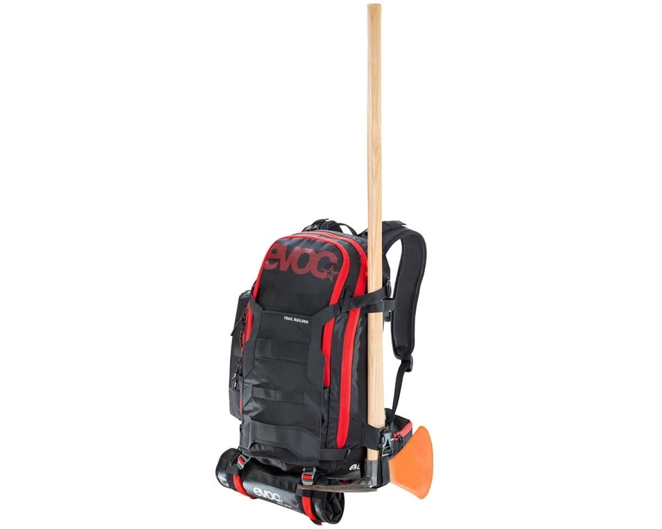 The EVOC Trail Builder Backpack is a complete portable trail building workshop for your back. This exceptionally durable backpack was designed and developed by and for trail builders who need to be able to go to remote places on their bike with heavy equipment. The sophisticated carrying system helps distribute heavy loads evenly and symmetrically, as close to the body’s center of gravity as possible. Perfect for carrying your equipment while hiking or riding, to and from the worksite.