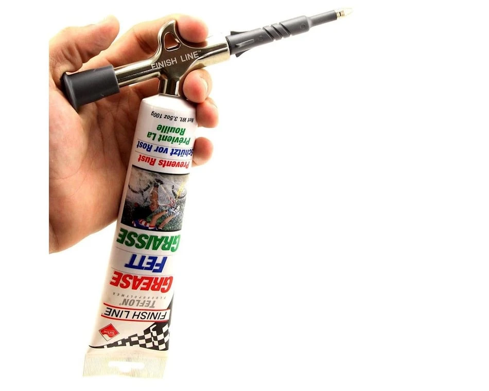 - Finish Line designed this grease gun to work with one hand for precision application of your favorite grease (fits all standard grease tubes.)