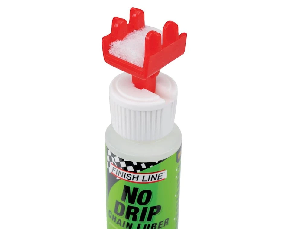 Sick of leaving little puddles of oil on the garage floor every time you freshen up your chain? Keep the slick stuff where you want it: in the bottle or on the chain. The Finish Line No-Drip Chain Luber is the key. Just roll it over your chain and get rolling.