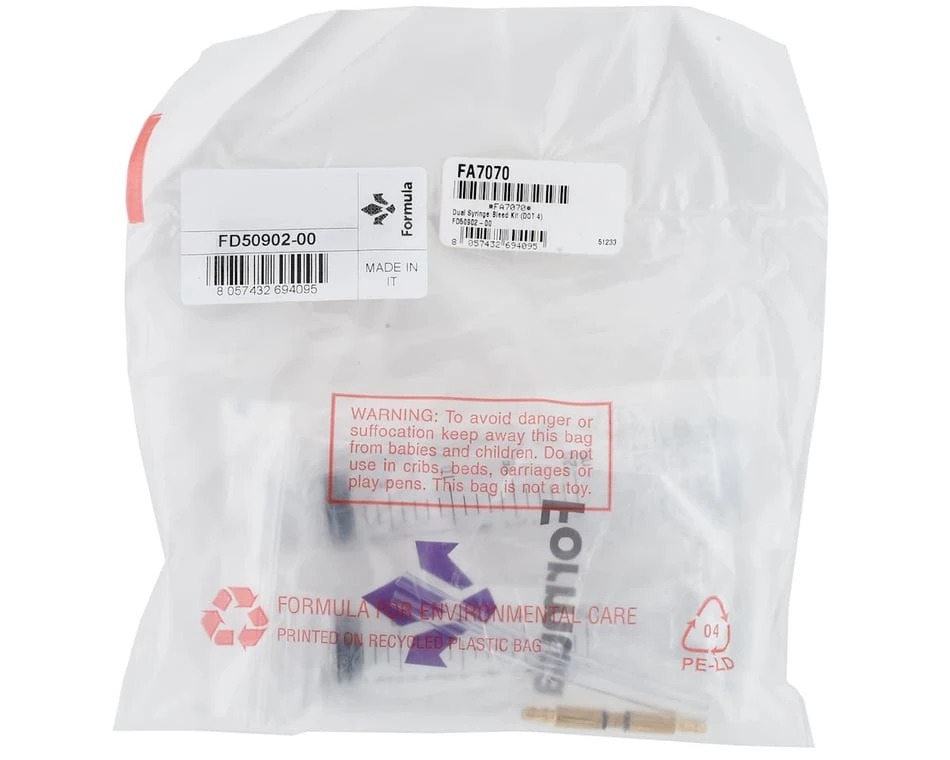- Bleed kits for all Formula brakes, includes two syringes, two brass bleed fittings and tubing