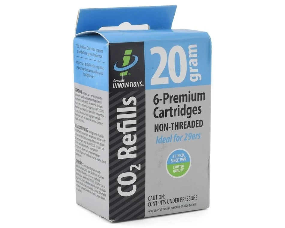 The Genuine Innovations 20 gram Premium CO2 Cartridges non-threaded 6-pack provides six lifelines that are worth their weight in gold out on the road/trail. Make sure you’ve got spare CO2 cartridges in reserve for those unfortunate rides plagued by flats.