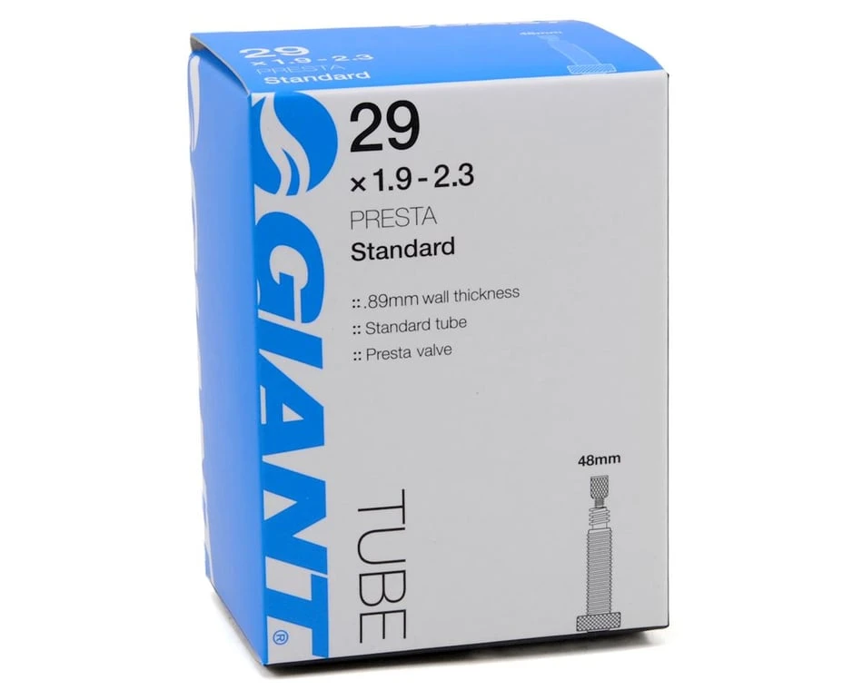 This is a Giant 29″ Standard Inner Tube with a Threaded Presta Valve. This tube features an .89mm wall thickness.