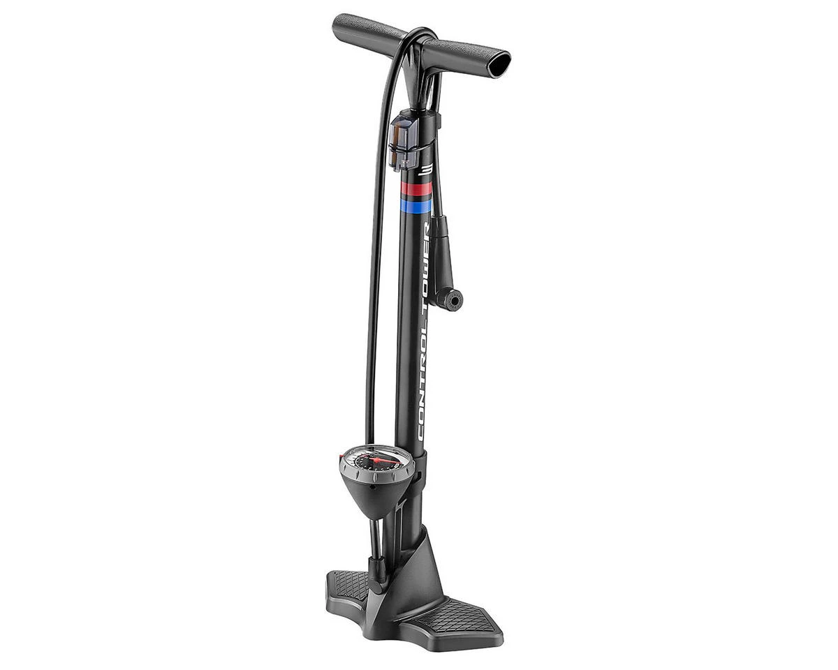 The Giant Control Tower 3 floor pump is an easy to use and effective floor pump that works on either presta or schrader valve stems and includes an easy to read pressure gauge and ball inflation attachments.