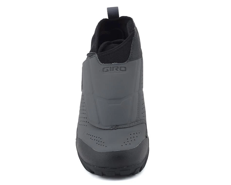 Built around a stout nylon shank that pedals like a pure XC shoe, the Giro Terraduro Mid Mountain Shoes have a grippy Vibram rubber outsole, making them awesome for all-mountain epics, enduro races and navigating the wettest terrain. High-grip platform keeps you steady when scrambling over rocks and logs or hiking through rough trails. Reinforced toe box protects the front of the foot from scrapes and impacts. Mid-top design supports your ankle through technical sections while the breathable, DWR-treated, Ariaprene ankle scree cover prevents weather and debris from entering the shoes. Lace closure has seven points of adjustment for a near-custom fit and lace shroud puts a stop to potential drivetrain disasters. Water-sealed cleat opening keeps the elements out and provides a secure connection with pedals for ultimate off-road performance.