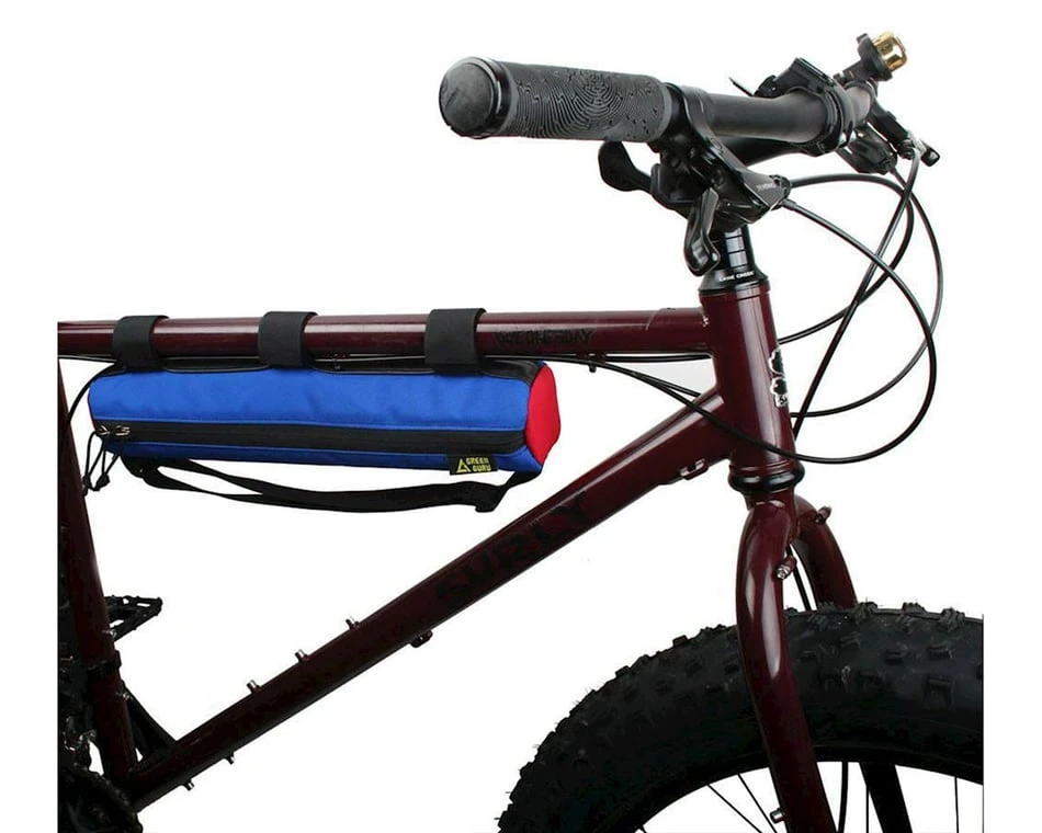 The Green Guru Tubular Insulated Can Sleeve is a beverage or gear carrier designed to conveniently mount to your bicycle. Keeps cans, bottles or even a bottle of wine chilled for hours when you are out for a ride on the trail, heading to the park, or on your way to a dinner party with friends. Built in the USA from upcycled industrial tent fabric, bike tubes and other durable materials, it is water resistant and made to last. It attaches easily with 3 hook & loop straps and has a carrying sling for ease of use off the bike. The Tubular insulated can sleeve is the best way to carry beverages or even gear along the top of your bicycle. Green Guru is dedicated to making cool and useful things out of discarded materials that would otherwise end up in a landfill. This reuse/re-purpose philosophy gives old materials new life, and gives us cool new outdoor gear. *Due to the up-cycled construction of this bag, the colors will vary depending upon material available*