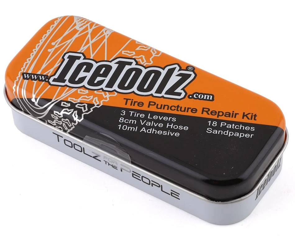 - Repair kit includes: 18 various sized patches, 3 tire levers, 10ml adhesive, and a sandpaper