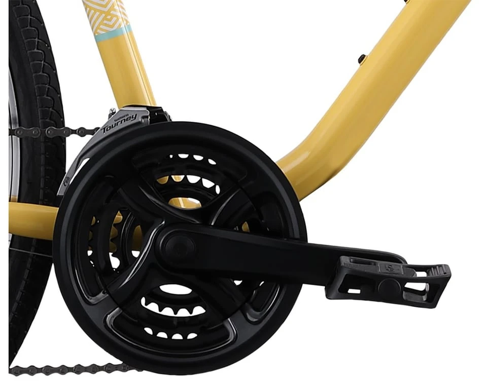 - Shimano 3 x 7 drivetrain offers 21 gear combinations