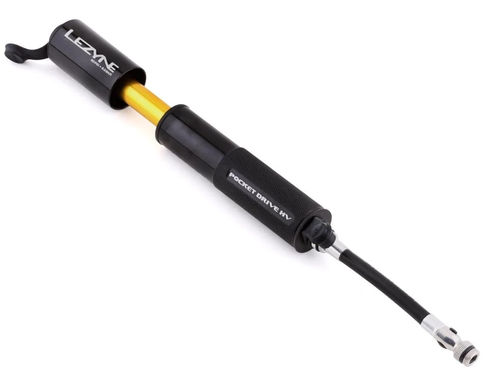 The Lezyne Pocket Drive HV Pump is an incredibly compact and lightweight high-volume hand pump featuring impressive pumping efficiency for mountain bikes and other large tire applications. Itโs constructed from durable CNC machined aluminum and has a knurled barrel for slip resistant operation. With its overlapping handle and integrated ABS Flex Hose, the Pocket Drive provides unparalleled performance for its size. The pump is Presta and Schrader valve compatible, and itโs completely rebuildable for long lasting service.