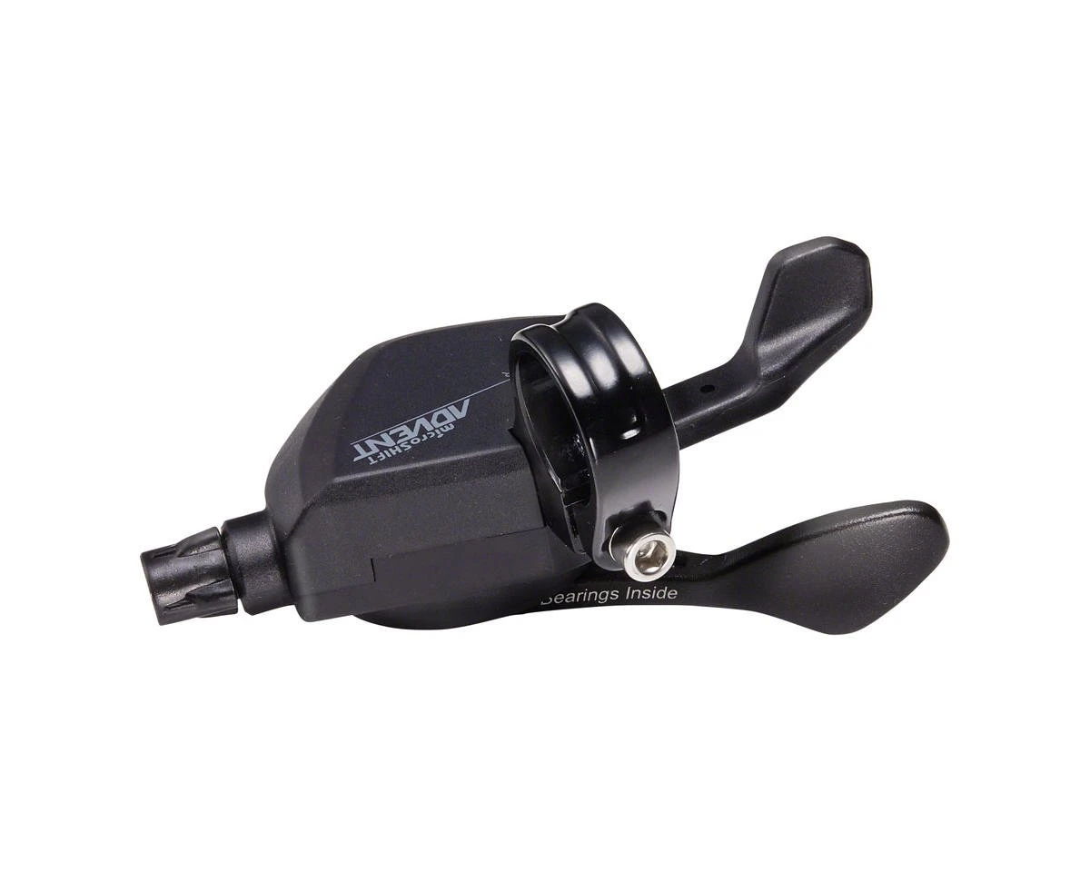 This Microshift Advent Xpress trigger shifter features ergonomic levers and precise, durable indexing for reliable performance in a variety of situations.