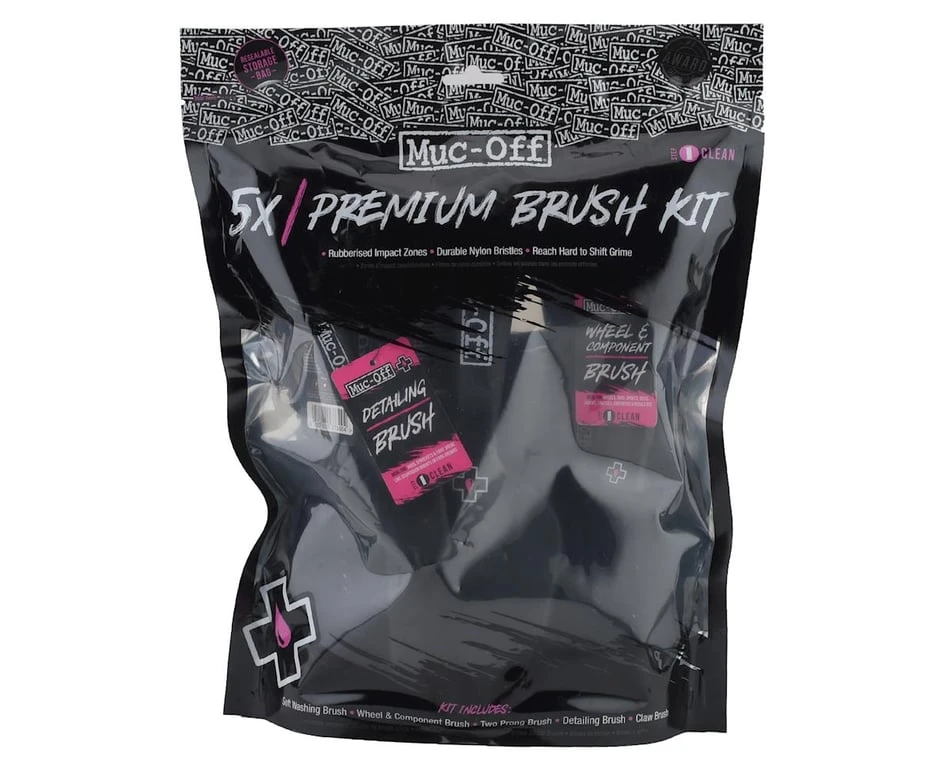 - 5x brush set includes: soft washing brush, detailing brush, claw brush, wheel and component brush, and two prong brush