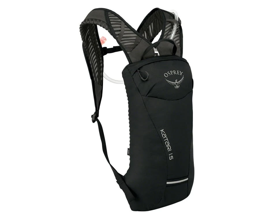 The Osprey Katari 1.5 is a super lightweight pack focused solely on hydration with a 1.5 liter reservoir. Great for race day or rides where you just need H20.