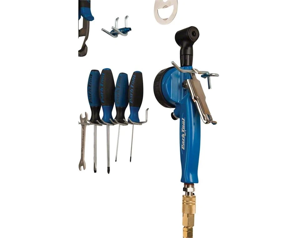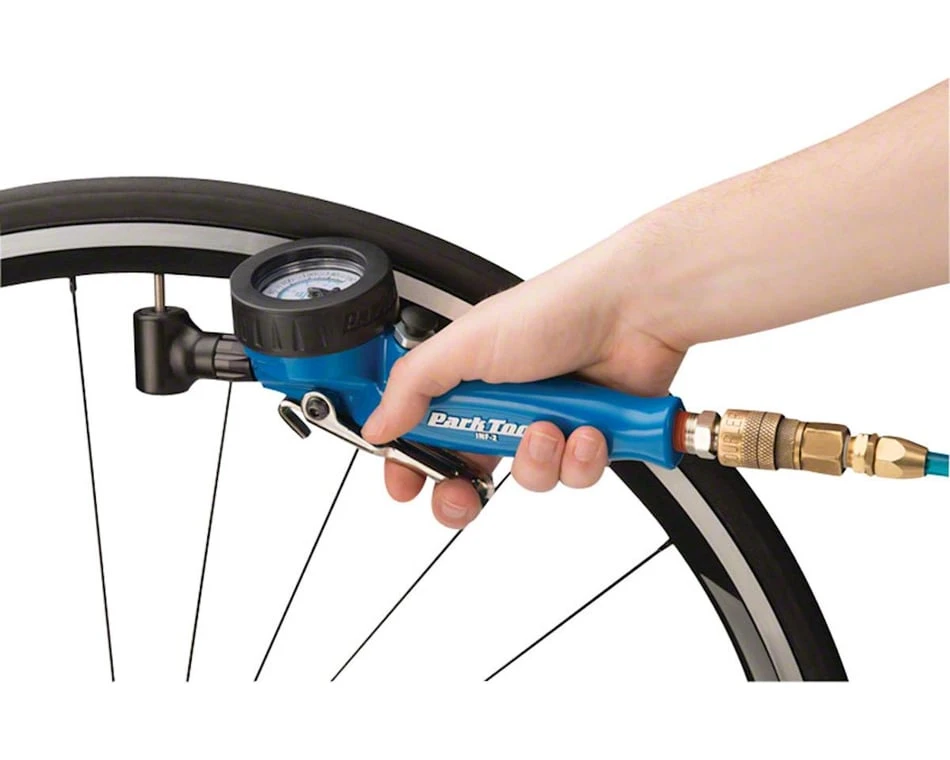 - Features an ergonomic grip and a built-in 220psi pressure gauge
