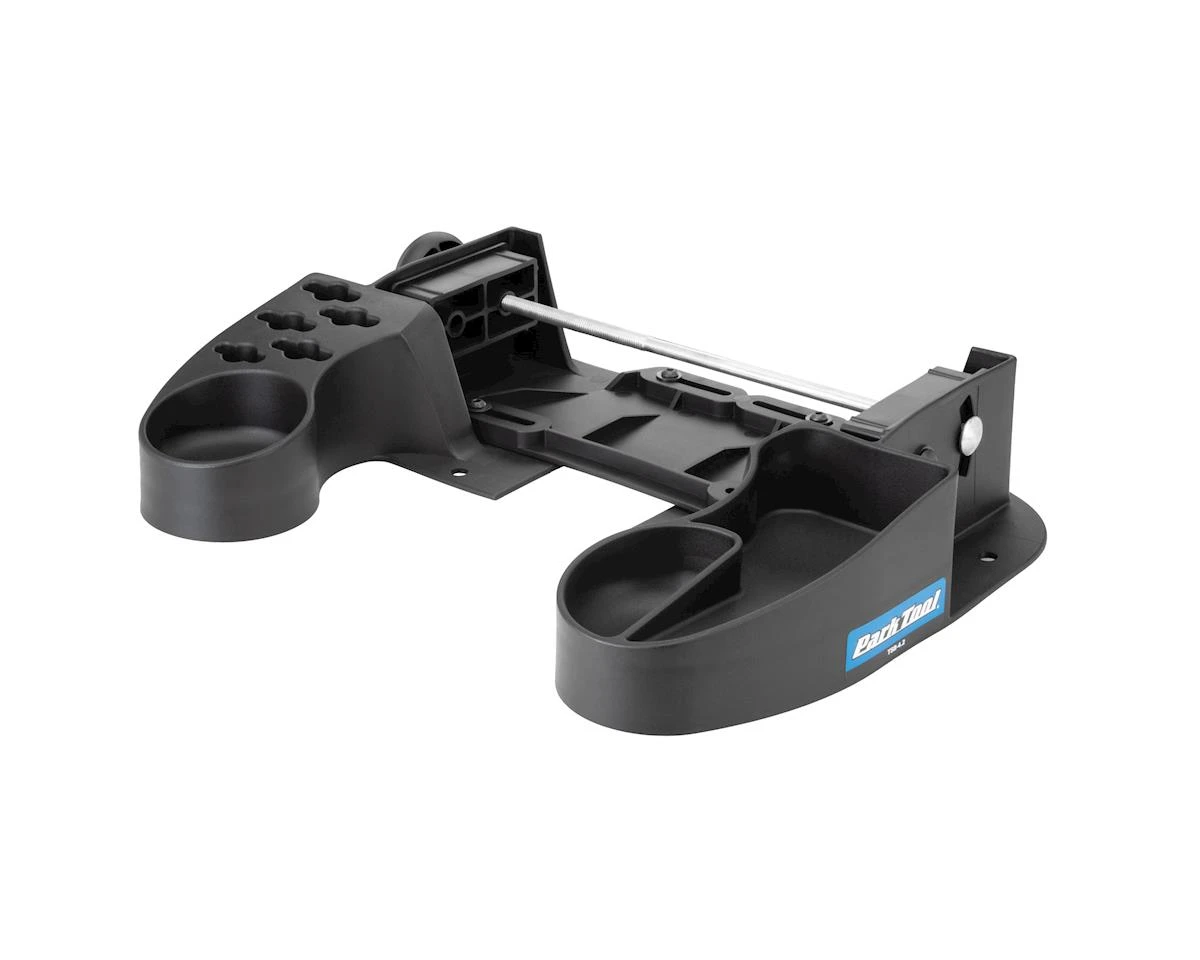 The Park Tool TSB-4.2 Truing Stand Tilting Base allows the TS-4.2 truing stand to tilt to 20 degrees from front to back. Various slots and holders are perfect for storing spoke wrenches and other small parts.