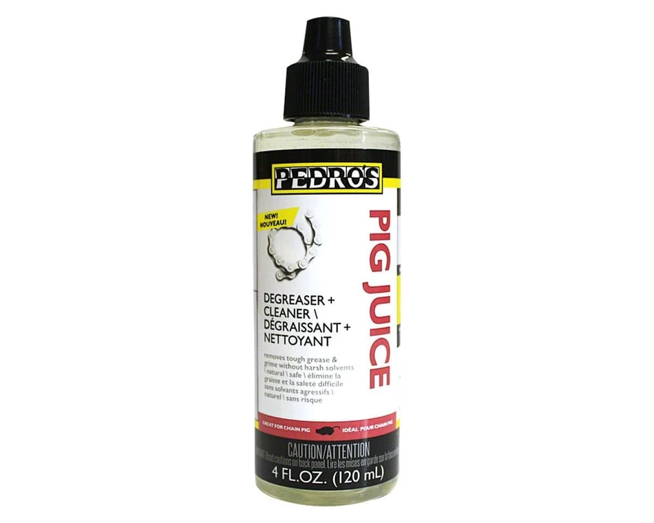 Developed specifically for Pedro’s grime-devouring Chain Pig chain cleaner, Pig Juice is an impressively effective and economical degreaser,cleaner that makes bicycle drivetrain cleaning quick, easy, and safe for anyone from novice to professional. Pig Juice features an advanced pre-activated formula that quickly penetrates & loosens, removing oils, soils, and grime with less scrubbing & rinsing, and leaves spotless residue-free parts. Free of harsh chemicals, gentle enough to use on any material, fully biodegradable, fragrance-free, dye-free, solvent-free, plant-derived, and zero-VOC.