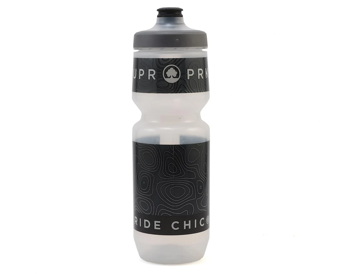 When biking in Upper Bidwell Park, Chico CA. you’re gonna be thirsty, and proper hydration is essential to your survival. In effort to keep you topped up with fluids while enjoying our great natural landscapes, Upper Park Clothing and Performance Bicycle have conspired with Specialized to release this limited edition water bottle. With a 26oz capacity, easy squeeze design, high flow nozzle, and unique Upper Park – Ride Chico – Topo graphics, you won’t be left short on fluids… or style.