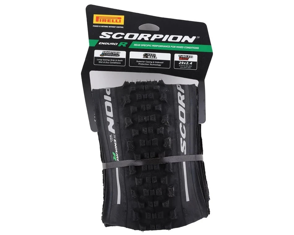 Designed as a rear specific tire, the Pirelli Scorpion Enduro R Tubeless Mountain Tire features a medium tread profile providing top notch traction and reliability over a multitude of terrains and conditions.