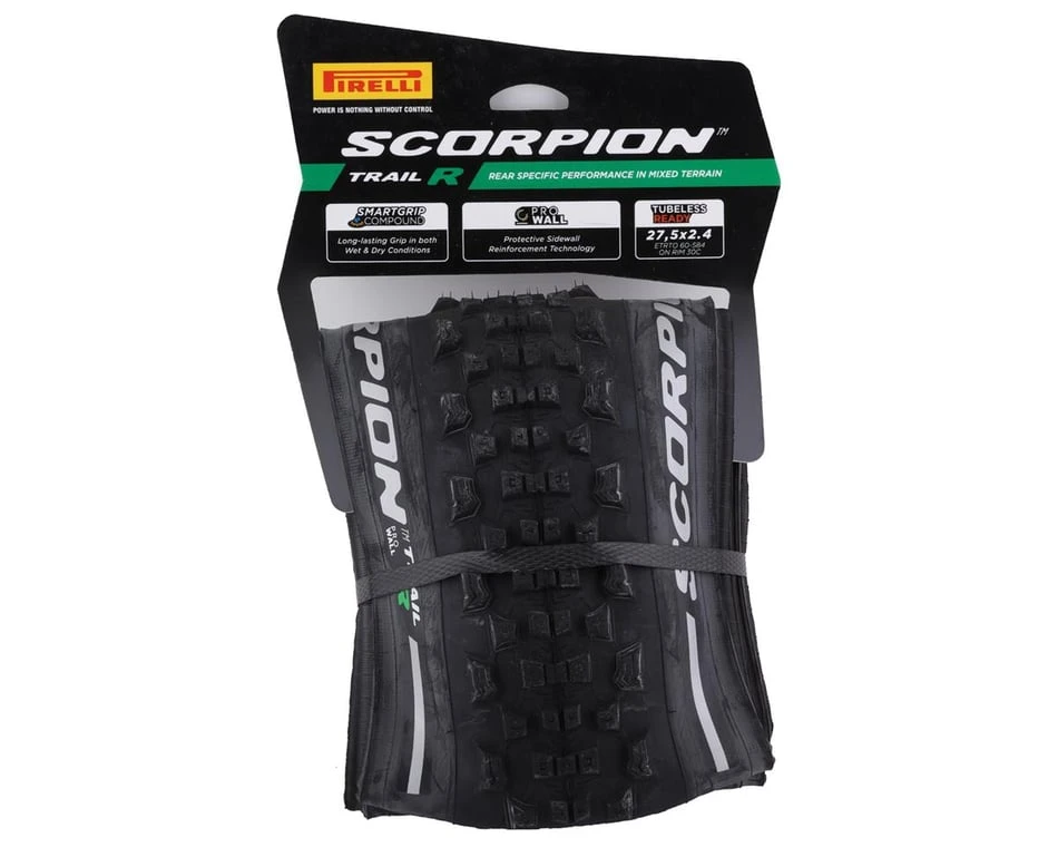 The Scorpion Trail R tire was designed as a rear specific tire with a center tread that increases grip and stability in both braking and accelerating in order to boost confidence over mixed terrain. The medium knob height and tread spacing provide an optimal balance between grip and rolling speed while being able to effectively shed mud and debris for a more connected and rewarding riding experience.