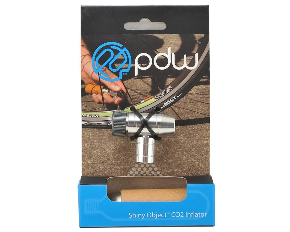The Shiny Object CO2 inflator is made of indestructible oh-so-shiny alloy and fits on both Presta and Schrader valves. Its control knob regulates how fast the CO2 is released.