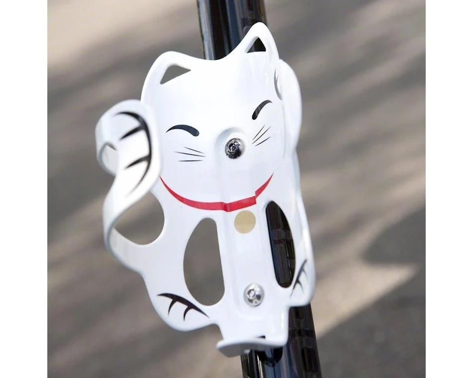 Meow this might be the cutest water bottle cage available! Made from lightweight and durable 5052 alloy. Depicting the Maneki-neko (Japanese for “beckoning cat”) with it’s left paw raised to attract customers (you). With a side loading design, you can meow carry a wide variety of bottle shapes, and have mounting options on smaller bike frames. Traditional bottle cages will hold your bottle, yes, but meow you can ride with good fortune.