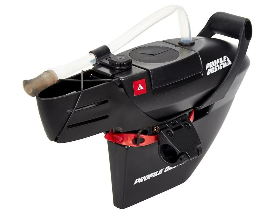 Center mounted low profile hydration system adapts to a wide variety of aerobar positions. Combining a bottle with a no splash refill port, integrated forward facing computer mount, and built-in accessory box to hold nutrition. With 35 ounces of water capacity, the FC35 is perfect for longer and hotter races.