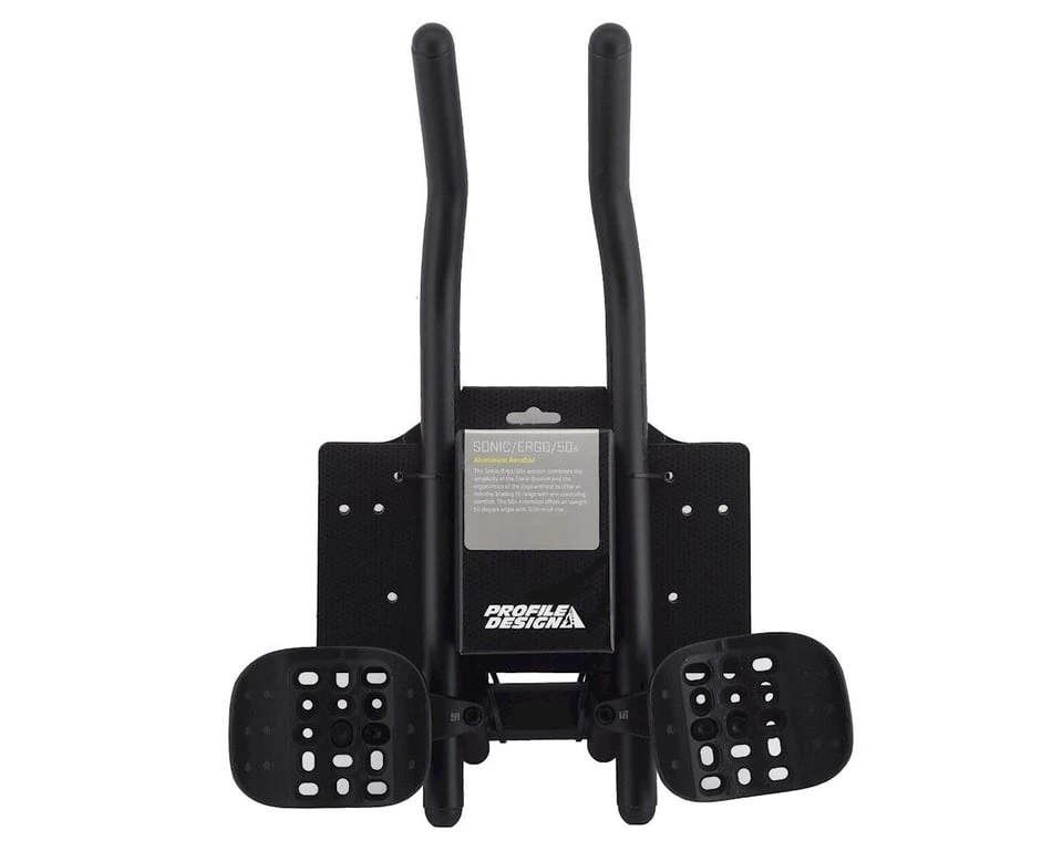 This is the Sonic Ergo 50a aerobar. It is designed to help you cheat the wind by allowing you to get into an aerodynamic position. The simplistic clip-on design looks clean and is able to be added to most round bars.