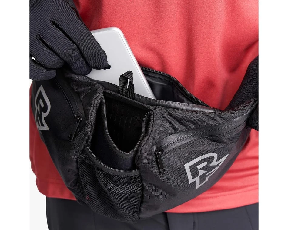 - Hip pack holds a water bottle, nutrition, tools, spare tubes, etc