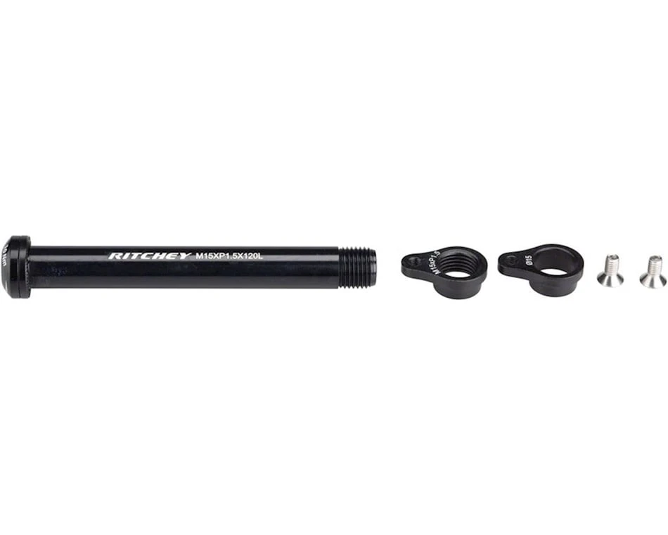 For additional stiffness, this replacement axle kit converts all Ritchey thru-axle gravel and cyclocross forks to 15mm thru-axle. The kit consists of the alloy 15 x 1.5mm thread thru-axle and replacement dropout inserts for the fork.