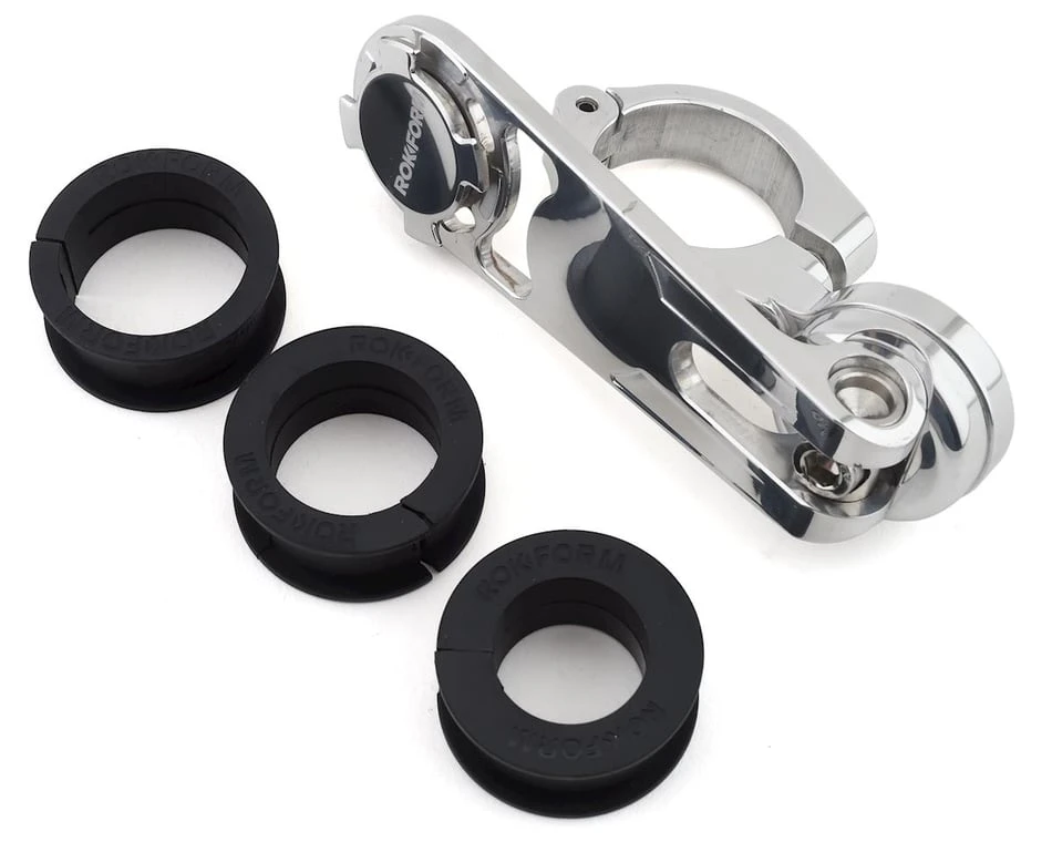 The Rokform Motorcycle Handlebar Phone Mount fits any bar between 22.2mm and 31.75mm (7/8″ to 1-1/4″). It is also compatible with most bicycle handlebars. With a dual-retention lock system and universal fit, this mount offers a wide range of adjustability allowing you to stay connected while on the road. 360 degrees of rotation and -20 to +55 degrees of pivot make it easy to optimize your viewing position. Available in black or polished aluminum. Compatible with Rokform twist-lock cases and Rokform Universal Adapters.