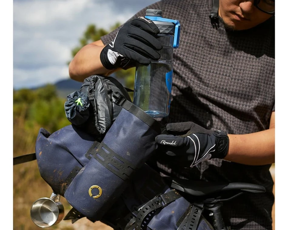 A flexible option for carrying water bottles, snacks, and anything else you might want accessible, the Roswheel Off-Road Bottle Pouch is a do-it-all secret weapon for any bikepacker’s arsenal. With included gear straps it can be mounted to the stem and handlebars or attached to the side of a larger Roswheel pack. When the weather takes a turn for the worse, the bag can be rolled up to protect its contents from the rain.