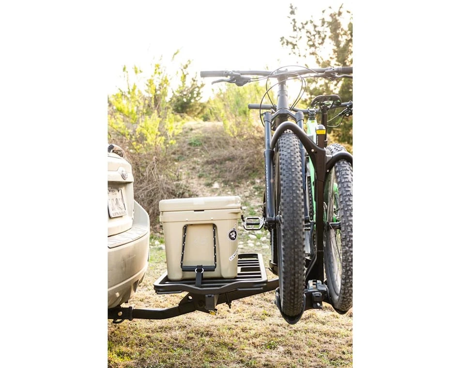 Put your Freedom or SuperClamp hitch rack to work with this American-made cargo carrier. Constructed with steel sourced from America’s heartland, this robust cargo hitch rack can carry 120 lb of gear. Featuring integrated tie-down points and raised side rails to keep your gear centered and secure and fast installation, it’s never been easier to haul it all