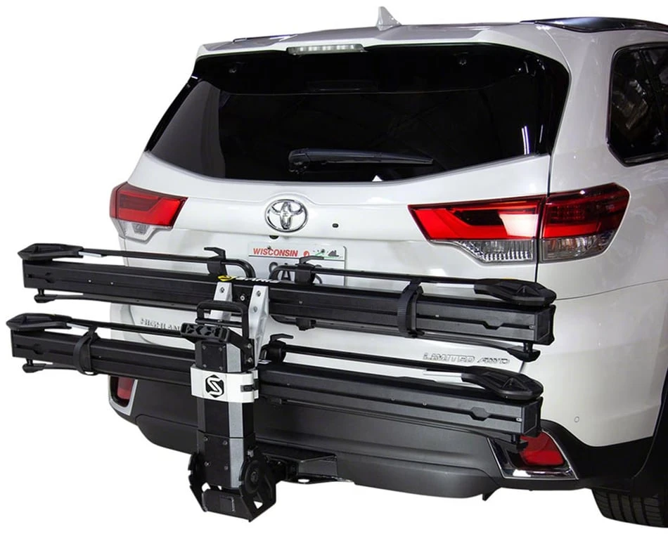 The MHS base is offered in multiple sizes and features tilting capabilities that allows for convenient trunk access with an easy-to-use outboard handle. With the Saris Hitch Tighter System, the rack has a rock-solid hitch connection that won’t sway back and forth behind your vehicle. This future-proofed hauling solution from Saris is designed to fit into everyone’s busy lifestyle.