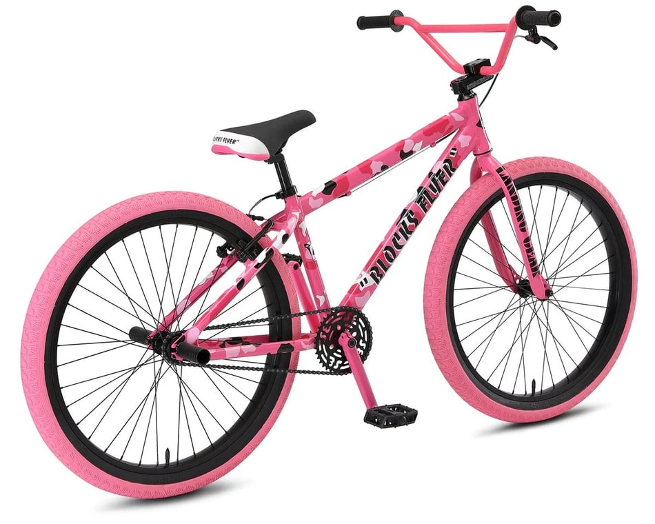 The 2022 SE Blocks Flyer 26″ Bike is the perfect ride for cruising with friends and hitting the town. A lightweight 6061 aluminum frame with an internal headset and sealed mid bottom bracket creates a smooth ride while the chromoly cranks and double wall rims provide the durability to get rowdy. Get your wheelies on with the Blocks Flyer Bike.